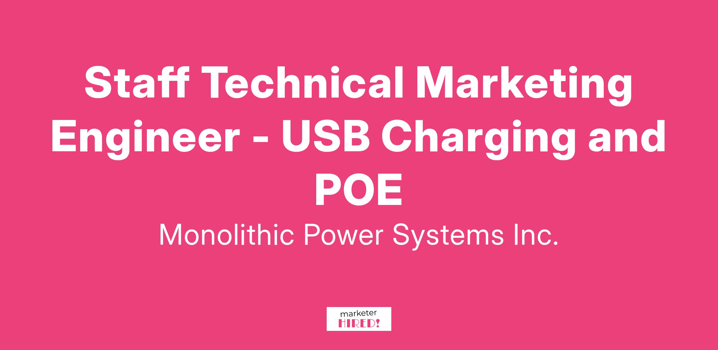 Staff Technical Marketing Engineer - USB Charging and POEMonolithic Power Systems, Inc. (MPS) is one of the fastest growing companies in the Semiconductor industry. We are worldwide technical leaders in Integrated Power Semiconductors and Systems Power delivery architectures. At MPS, we cultivate creativity, are passionate about sustainability, and are committed to providing leading-edge products and innovation to our customers. Our portfolio of technology helps power our world --- come join our team and see how YOU can make a difference.