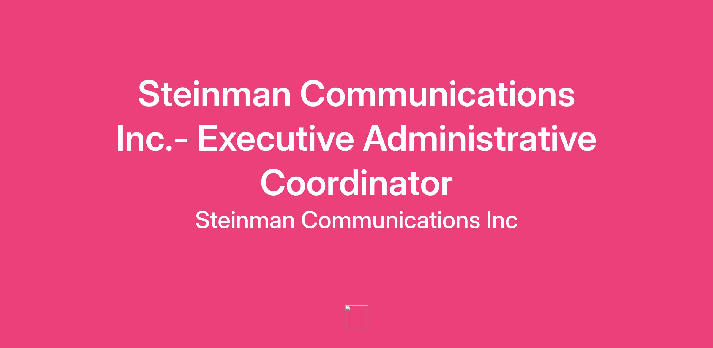 Steinman Communications is seeking an experienced Executive Administrative Coordinator. Successful candidates will be responsible for providing operational and administrative support to the President and other executives including managing projects, preparing reports, and handling information requests. The position requires an individual with the ability to tackle challenging and stretching assignments in a professional manner.