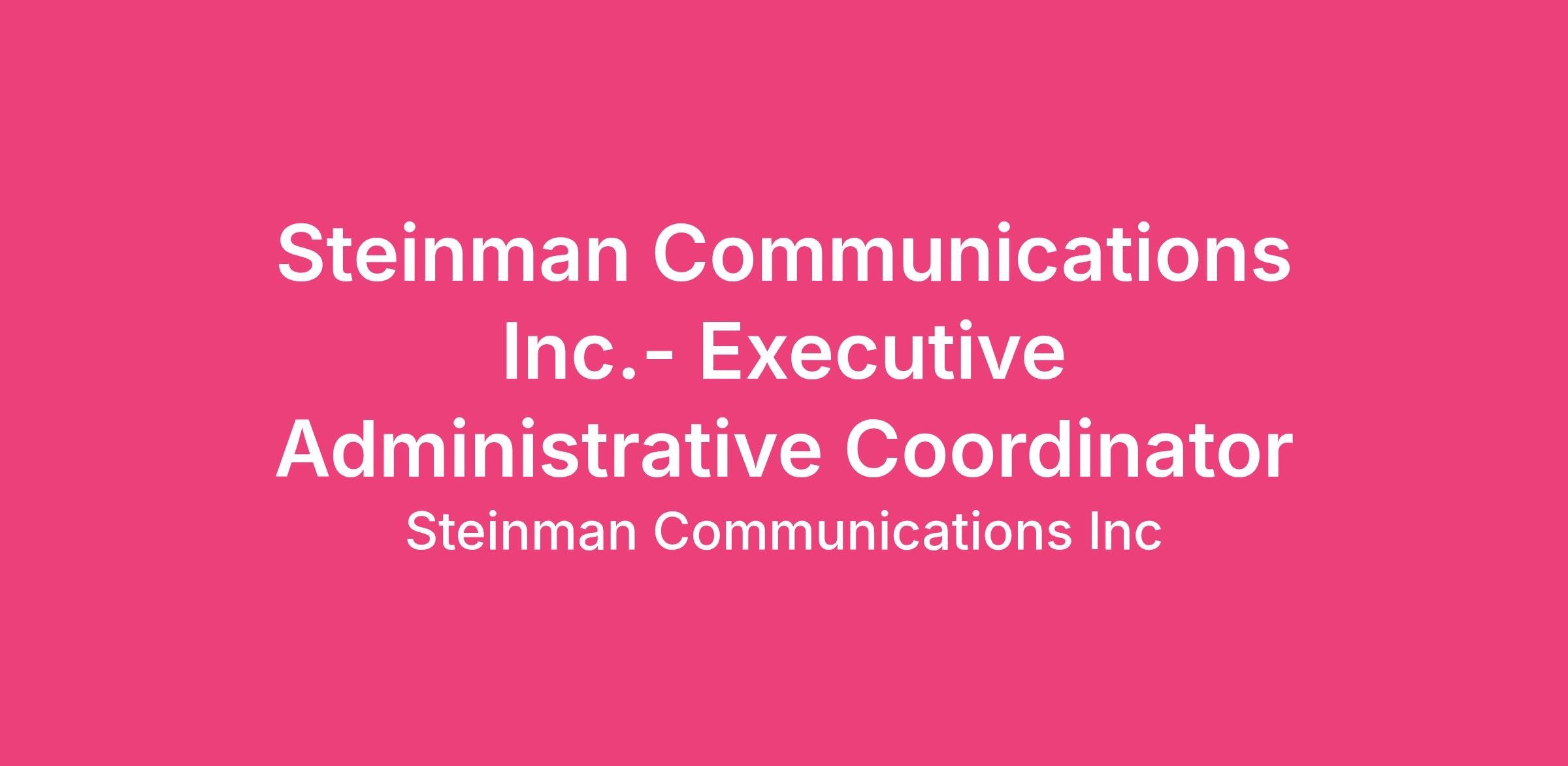 Steinman Communications is seeking a highly experienced Executive Administrative Coordinator to provide comprehensive operational and administrative support to the President and executive leadership team. This role plays a critical part in supporting executive effectiveness through project coordination, report preparation, information management, and high-level administrative oversight.