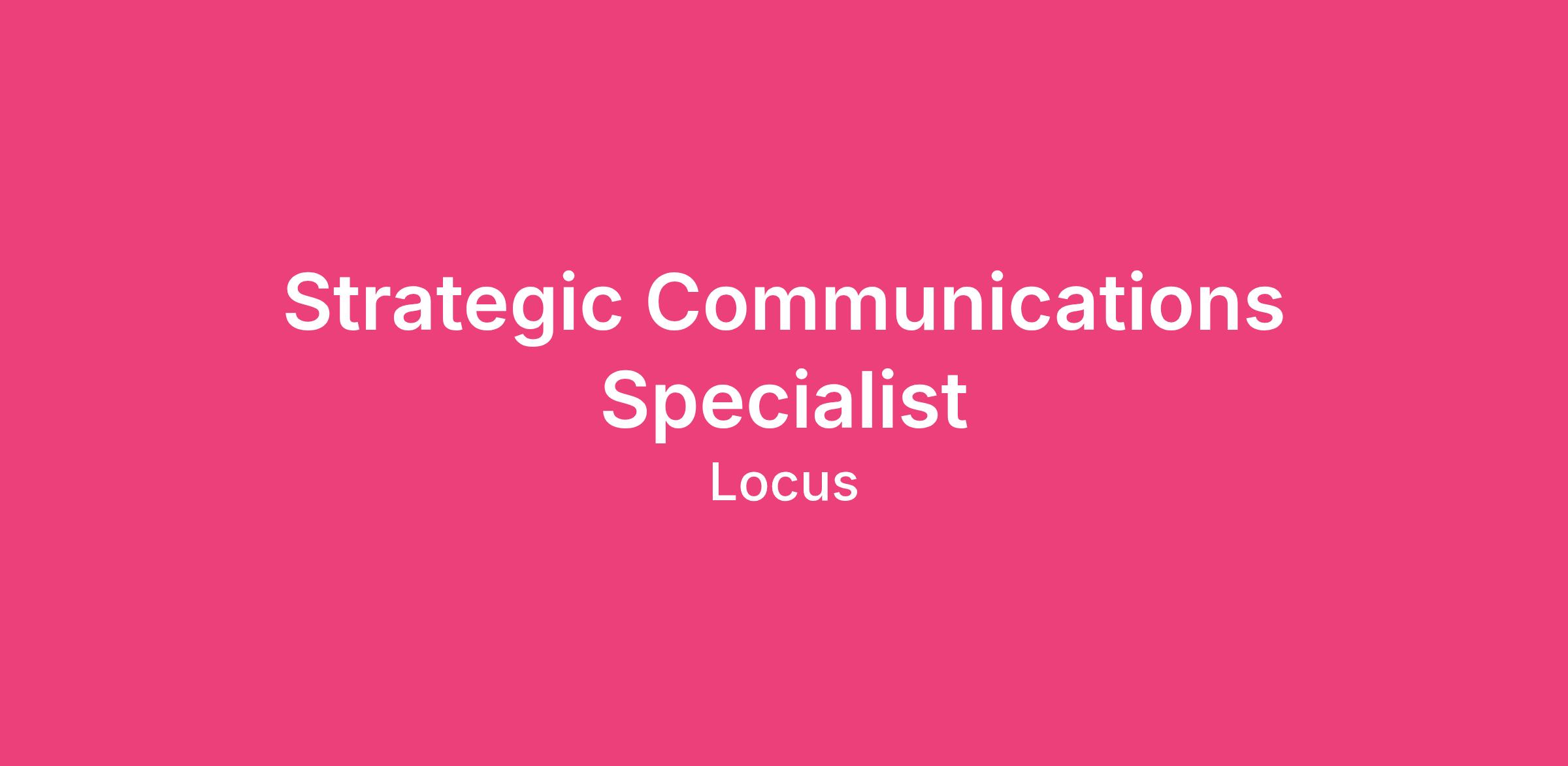 Locus is seeking a Strategic Communications Specialist with 5+ yearsβ experience to lead the development and execution of 1) an internal communications strategy that supports an internal culture of transparency and informed collaboration and 2) an external communications strategy that expands brand awareness and clearly positions Locus as a trusted partner. This role ensures that our messaging and storytelling reflect our values and value proposition and strengthens trust among internal and external stakeholders. This full-time position will require occasional local, statewide, or regional travel (up to 25% as needed).