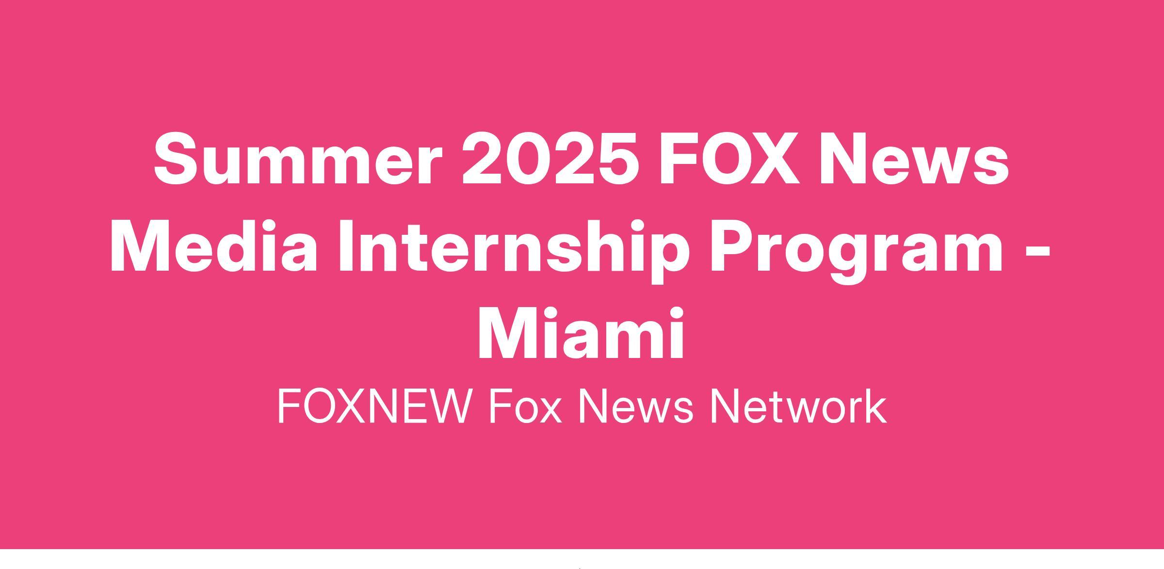 You will be considered for an internship based on the content of your cover letter, as well as your prior experience and interests, as determined during the recruitment process. You may be placed with FOX News Channel’s Miami Bureau.