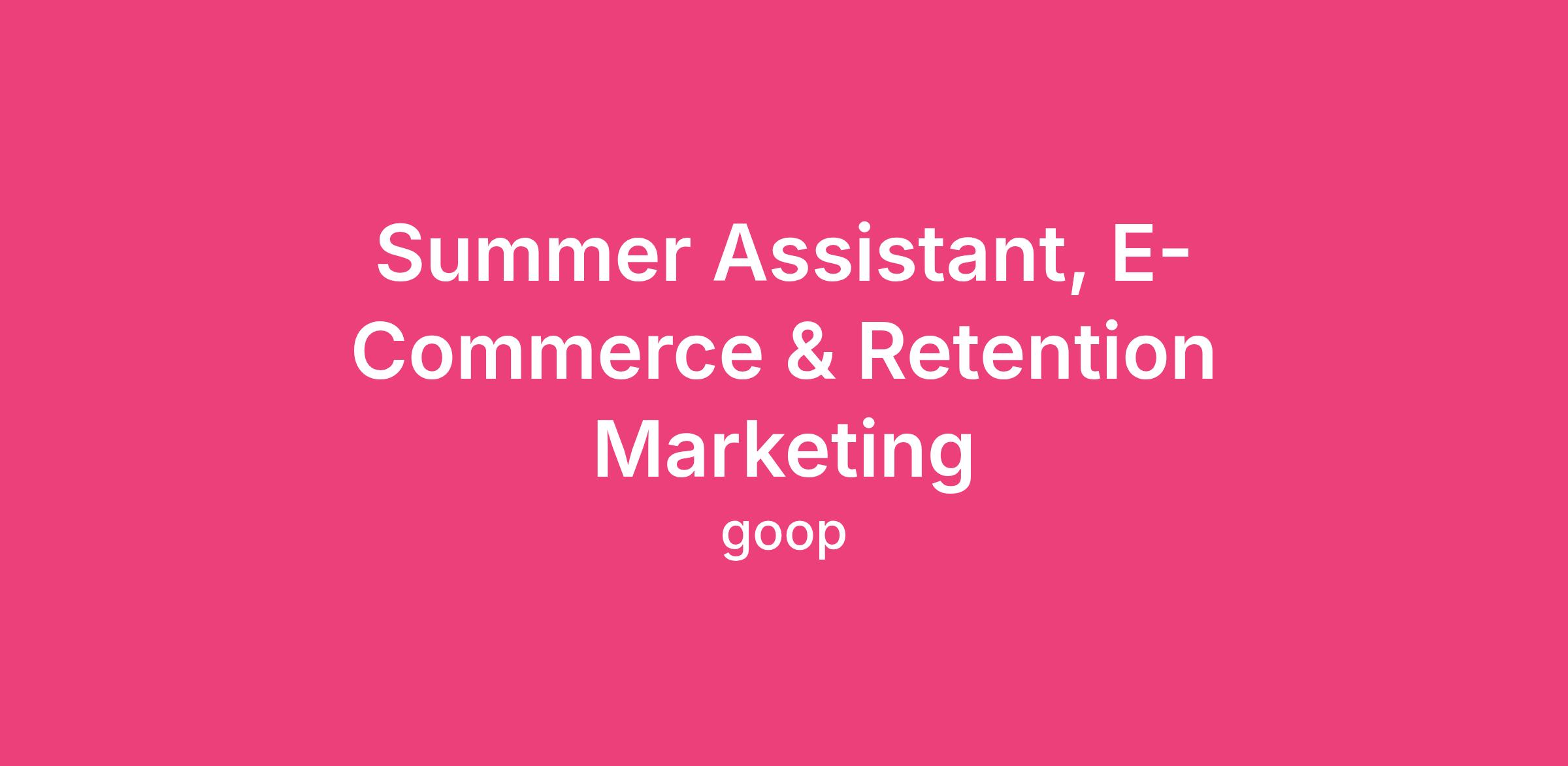 As an E-Commerce & Retention Assistant, you will have the unique opportunity to learn email marketing, site merchandising, and lifecycle marketing tactics, working closely with both the e-commerce and retention teams — as well as cross-functional partners — on impactful day-to-day responsibilities. This role supports two distinct but connected teams: the E-Commerce team, focused on site performance and catalog operations, and the Retention team, focused on customer engagement and repeat purchase behavior — both working in support of goop's broader revenue and growth goals. You will report to the Manager of Retention Marketing. This role is perfect for motivated individuals seeking to deepen their expertise in e-commerce operations and CRM, develop new competencies, and lay the groundwork for a successful career in digital marketing.