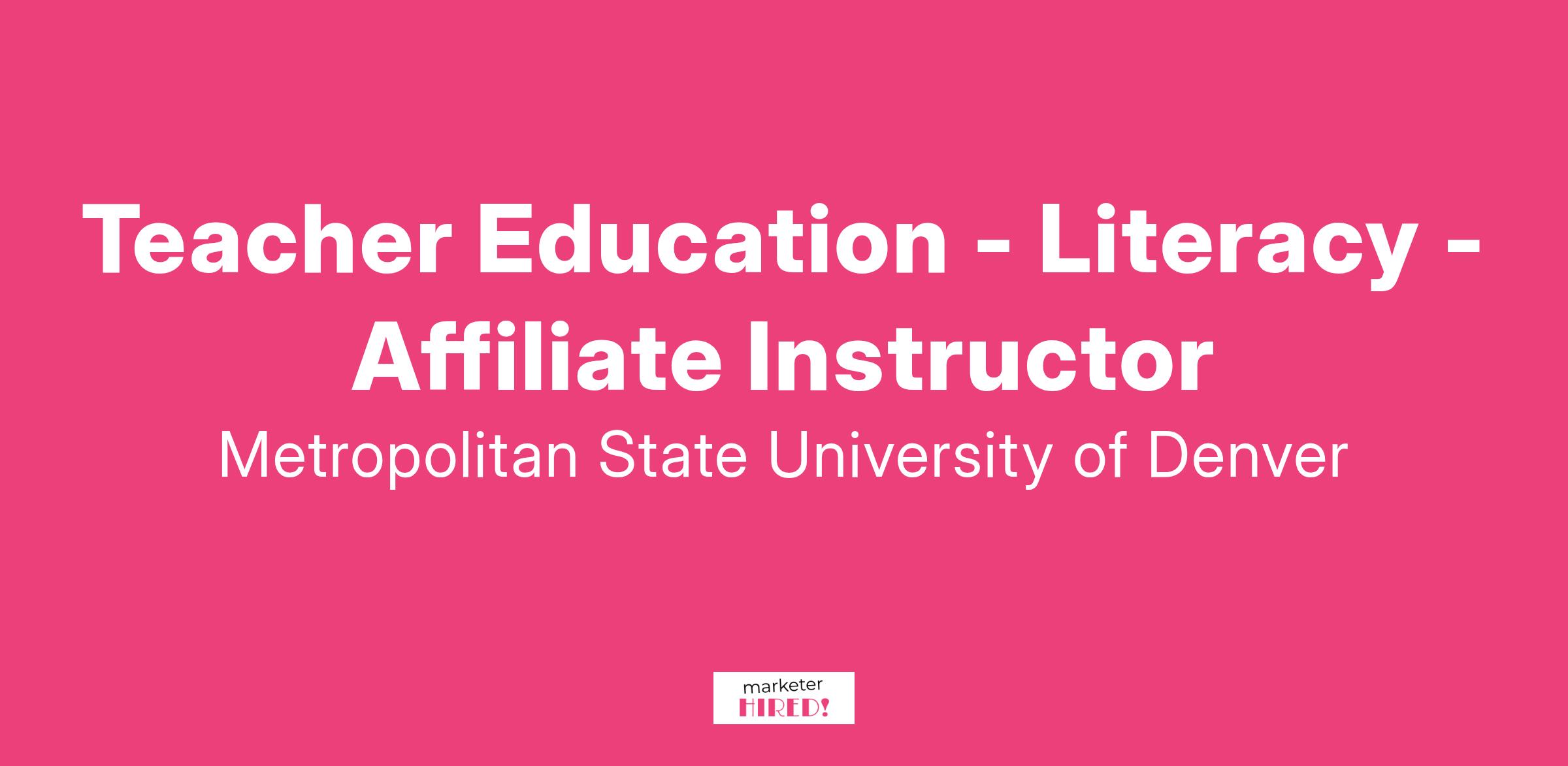 The Department of Elementary Education & Literacy at Metropolitan State University of Denver (MSU Denver) invites applications for part-time affiliate faculty teaching positions.