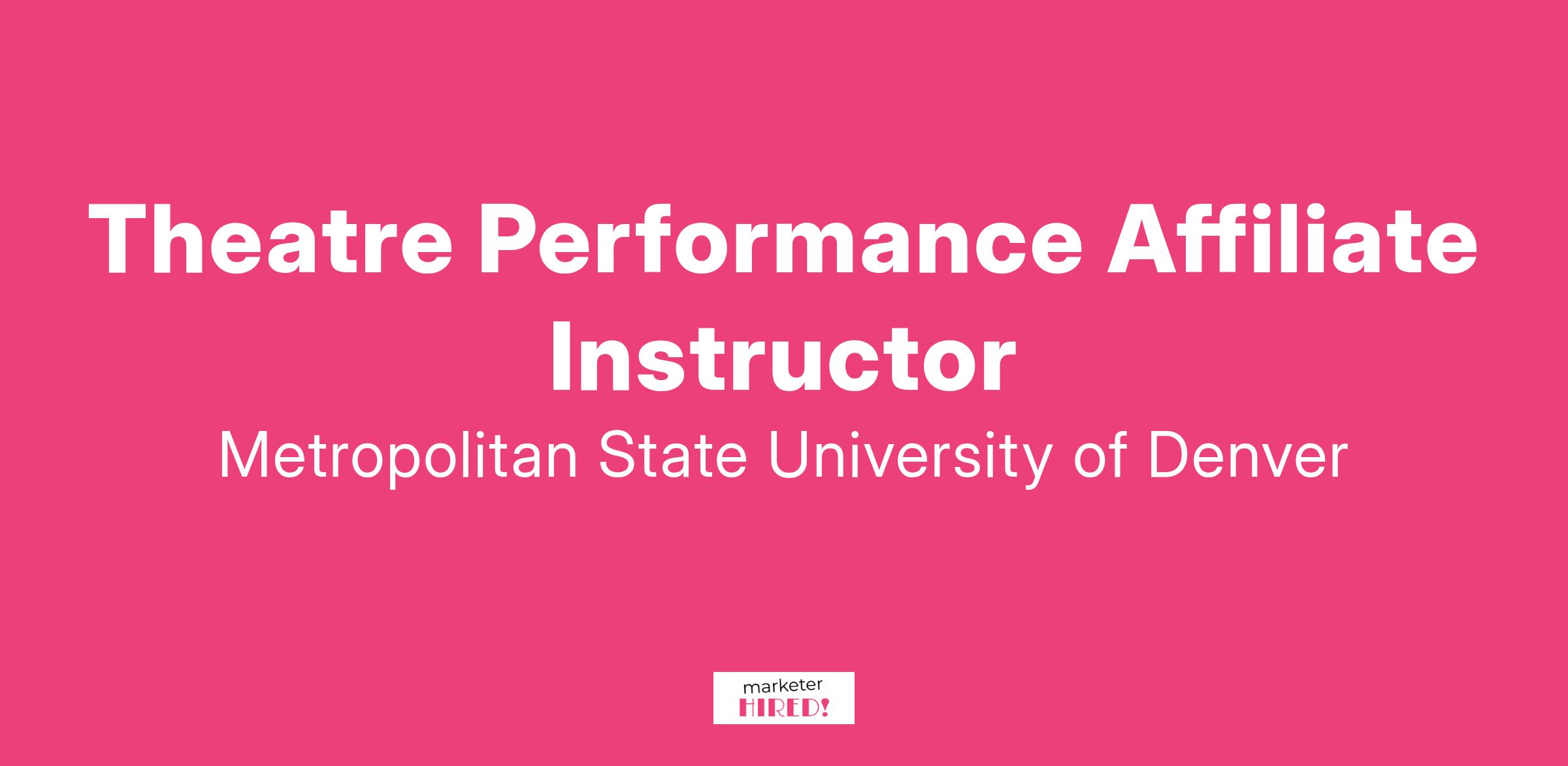 The Department of Theatre and Dance at Metropolitan State University of Denver (MSU Denver) invites applications for part-time affiliate faculty teaching positions. This listing is for potential future affiliate faculty needs for our Theatre Performance Program.