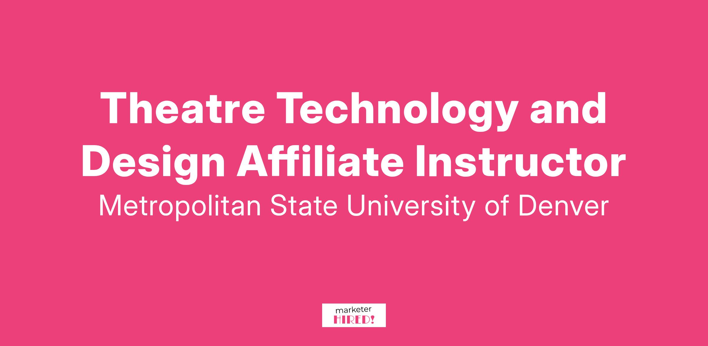 The Department of Theatre and Dance at Metropolitan State University of Denver (MSU Denver) invites applications for part-time affiliate faculty teaching positions. This listing is for potential future affiliate faculty needs for our Theatre Technology and Design Program.