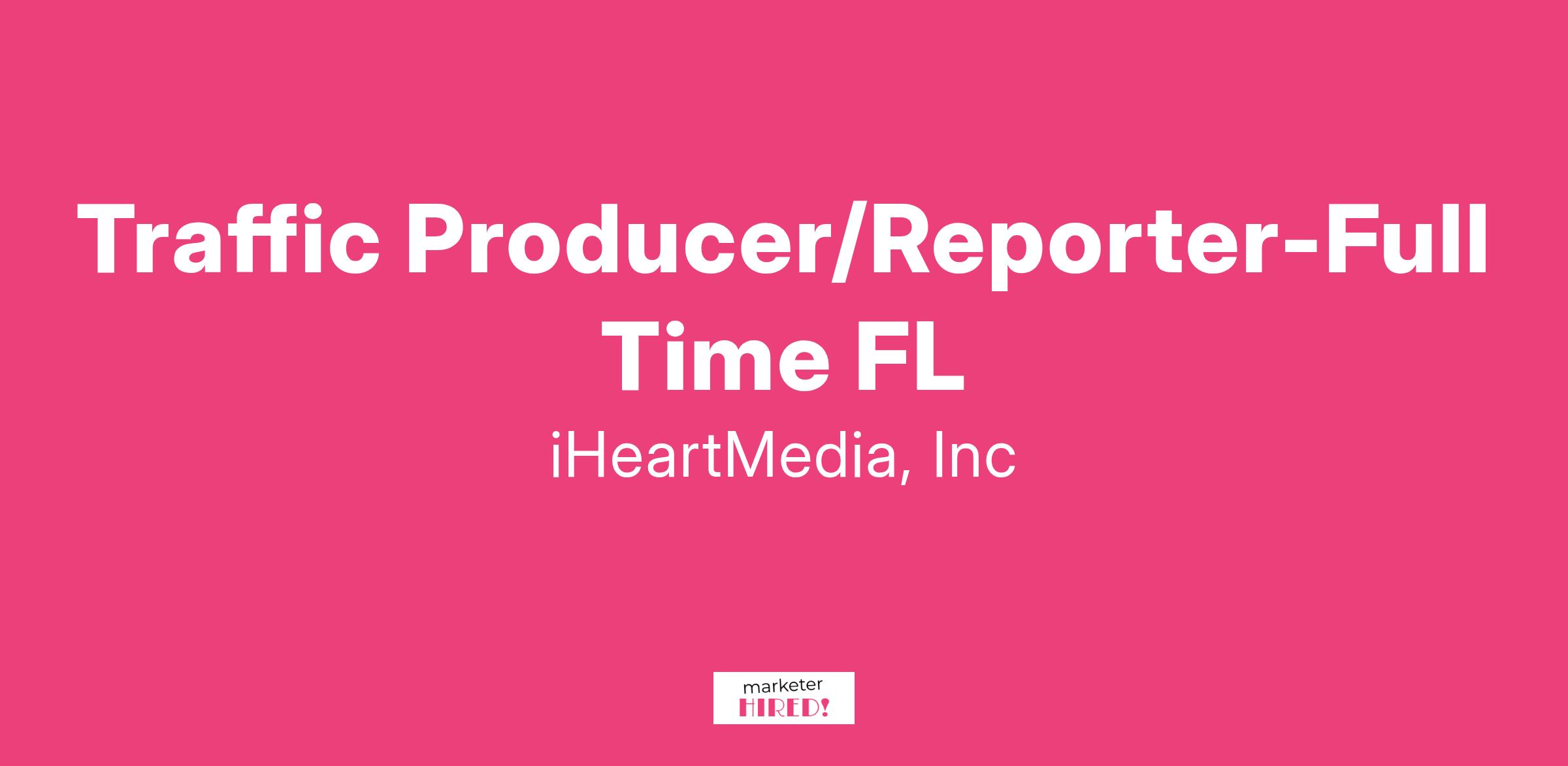 What We Need:Total Traffic & Weather Network (TTWN) has an immediate opening for a Full-Time experienced traffic reporter for Tampa Bay - Orlando area!If you have a background in some of the skills below, you are encouraged to apply; we can train and help you develop the rest! We're looking for outgoing, self-motivated, detail oriented, and flexible people. You will work in a fast-paced, challenging, and friendly environment.** In addition to applying please send an MP3 demo or voice memo of your voice to **What You'll Do:Reporting traffic on radio stations at our new Feather Sound Studios
