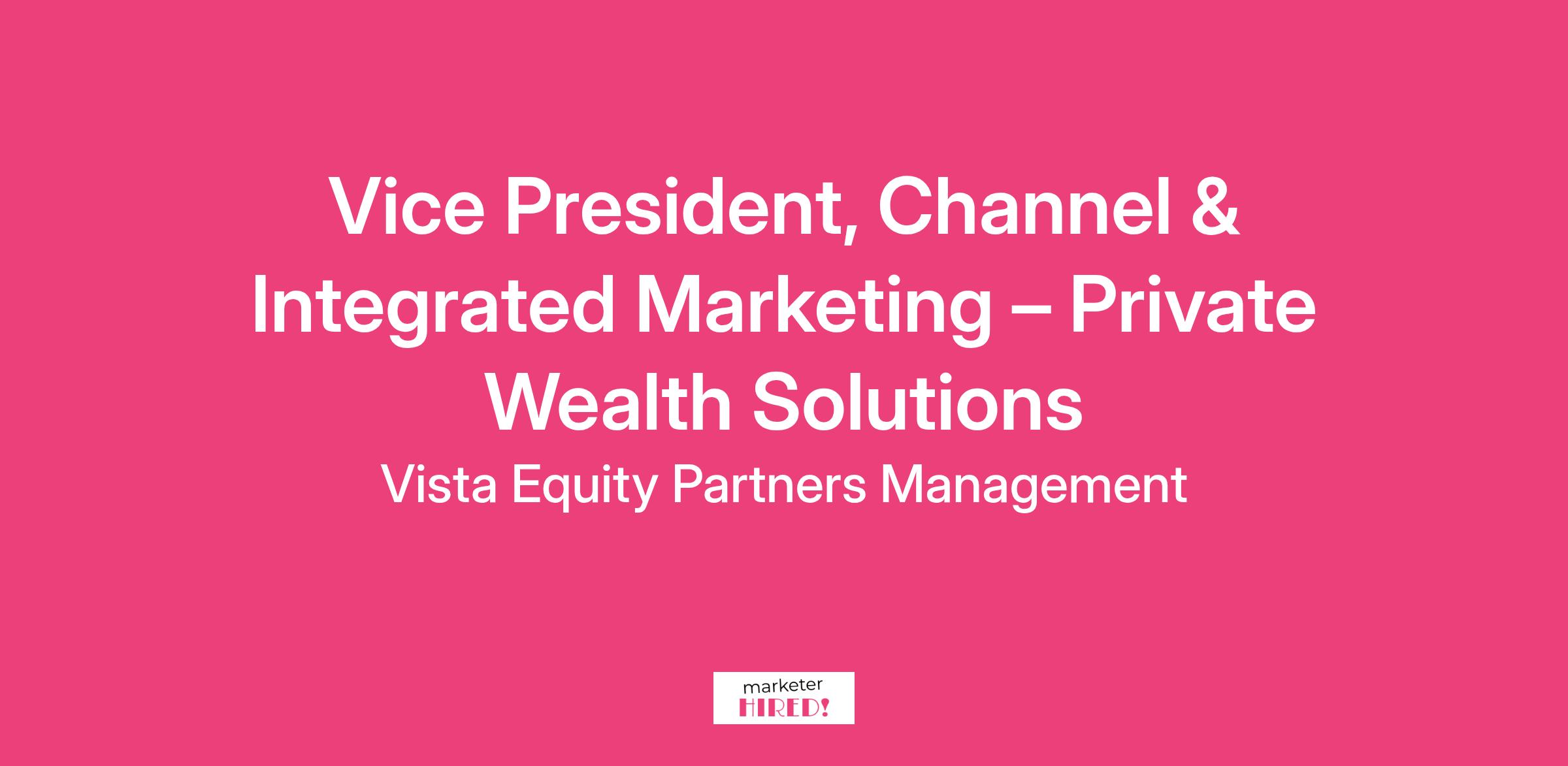 This is an exciting time to join the Private Wealth Solutions (PWS) Marketing team at Vista Equity Partners as we build a brand new digital engagement strategy and scale lead generation for the Private Wealth business, a strategic and high-growth area for the firm. We are developing innovative marketing strategies to engage financial advisors, private banks, and RIA partners, while enabling scalable growth using leading digital and AI tools. The Marketing team works cross-functionally to advance the Firm’s brand, drive advisor education, deepen client relationships, and deliver personalized digital experiences across the investor lifecycle.