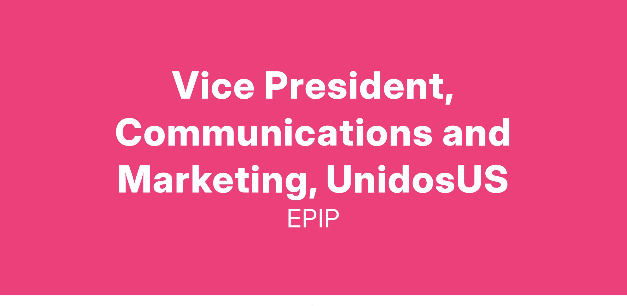 UnidosUS seeks a Vice President of Communications and Marketing (VP) to develop and execute integrated communications and comprehensive media relations strategies to support UnidosUS’ institutional priorities and strategic program and policy initiatives. Working in a fast-paced environment, the VP will also lead UnidosUS’ efforts to innovate and optimize its communications and marketing work, build out teams, and design new practices of internal coordination and collaboration with other departments.