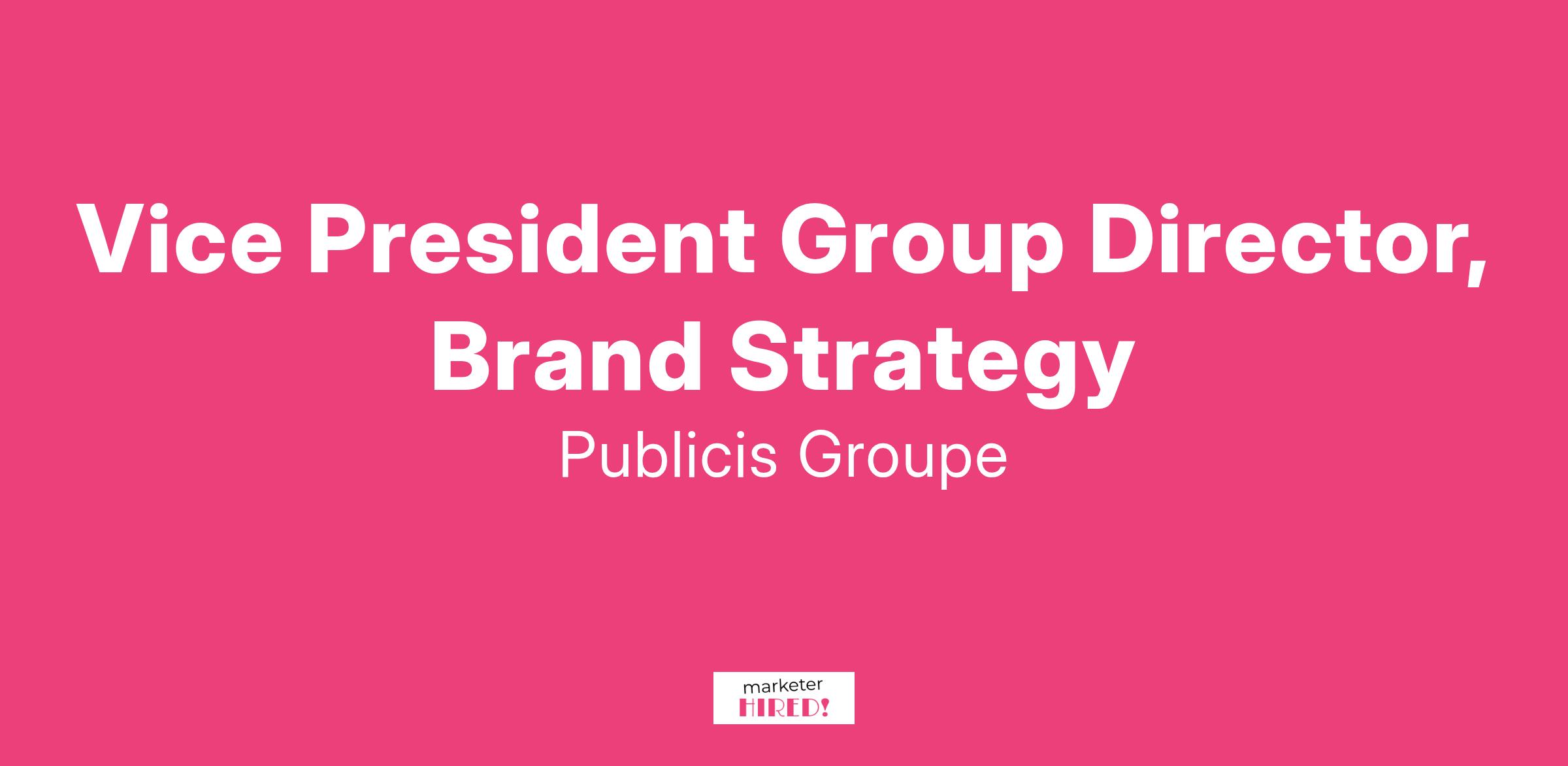Job Responsibilities:As Vice President/Group Director, you’ll take ownership in driving the impact of our business, leading the charge for us to become a more influential partner to CMOs and CEOs through the quality of our ideas and our creative work.Day to day, you’ll be tasked with:Partnering with the Creative Director and providing inspiration for the Creative DepartmentLeading the charge to create and champion our own original organizing ideas, and reducing our reliance on activating those of other agenciesManaging and mentoring mid-level planners and rising Brand Strategy talentServing as both an anchor and springboard for the other strategic capabilities: Marketing, Media & Strategy & AnalysisActing as Guardian angel for Relationship Leads, a trusted partner to Clients, and an ally for New Business