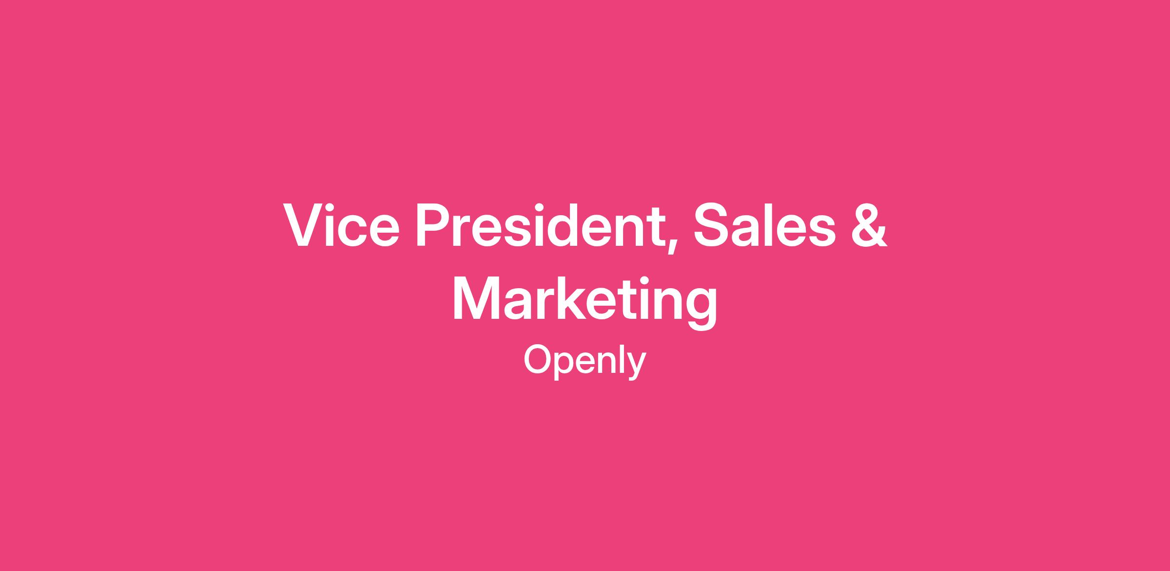 Openly is looking for a Vice President, Sales & Marketing to lead its go to market organization. Reporting to the Chief Operating Officer, this highly visible senior role will be responsible for leading Openly’s current business development and marketing teams that are tasked with driving exponential growth through its partnerships with independent insurance agencies. This role will be responsible for optimizing Openly’s “land & expand” growth strategy. This includes enhancing Openly’s brand awareness with independent agents, increasing Openly’s agency footprint and driving additional activity through each of Openly’s appointed agency partners. This role will also be responsible for the continued growth and expansion of tooling and data utilization in the team’s operating model that ultimately leads to internal efficiency gains.