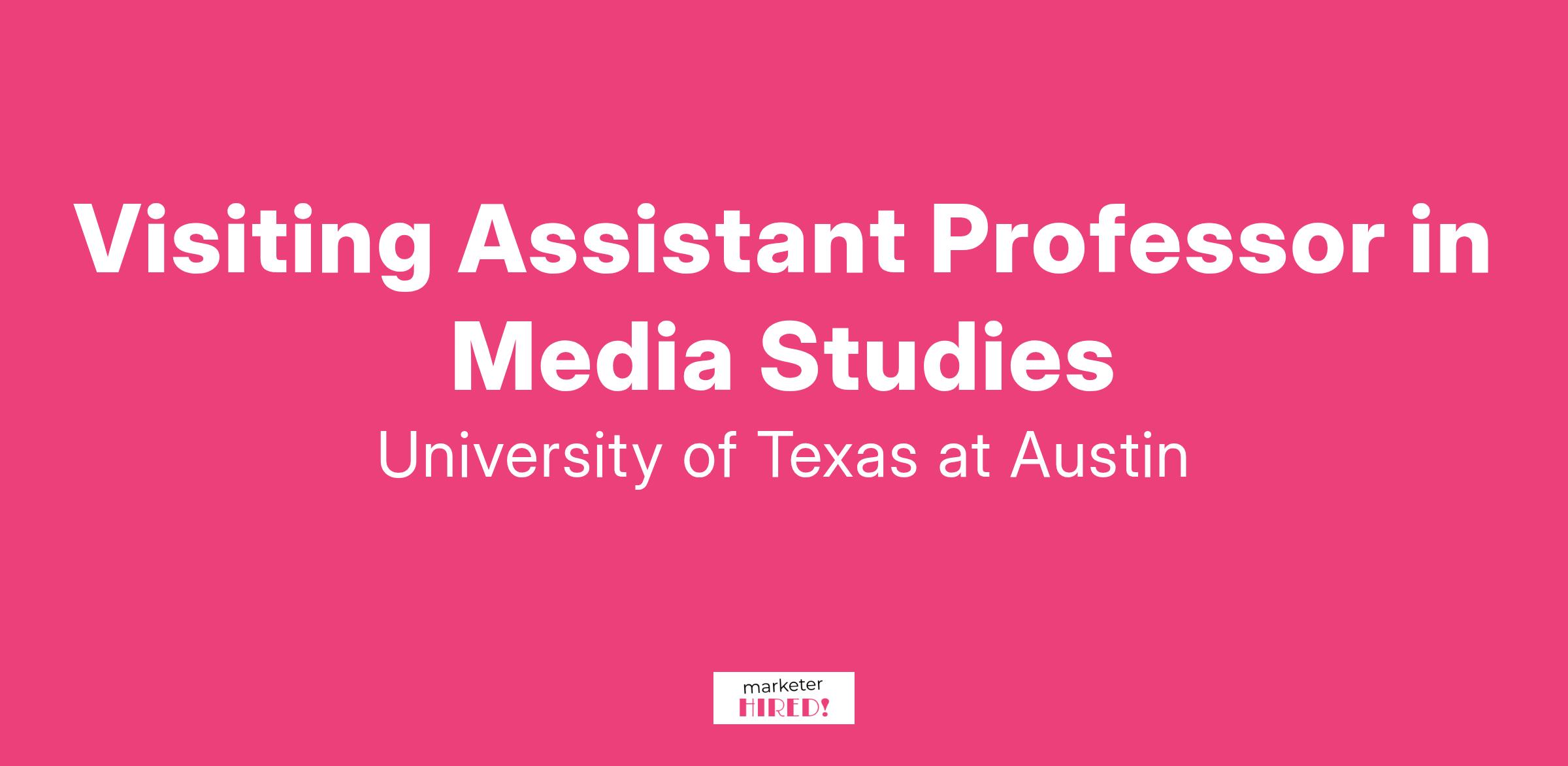 The Department of Radio-Television-Film at the University of Texas at Austin seeks applicants for a Visiting Assistant Professor position in Media Studies or closely related field. The Department is housed within the Moody College of Communication, and offers a broad range of courses in media studies, production, and screenwriting leading to B.S., M.A., M.F.A, and Ph.D. degrees. The Department of Radio-Television-Film is one of the few programs in the country that is consistently ranked in the top ten in both media studies as well as production and screenwriting. The Moody College of Communication, one of the largest, most comprehensive communication colleges in the country, includes programs in Advertising and Public Relations, Communication Studies, Journalism and Media, and Speech, Language, and Hearing Sciences.