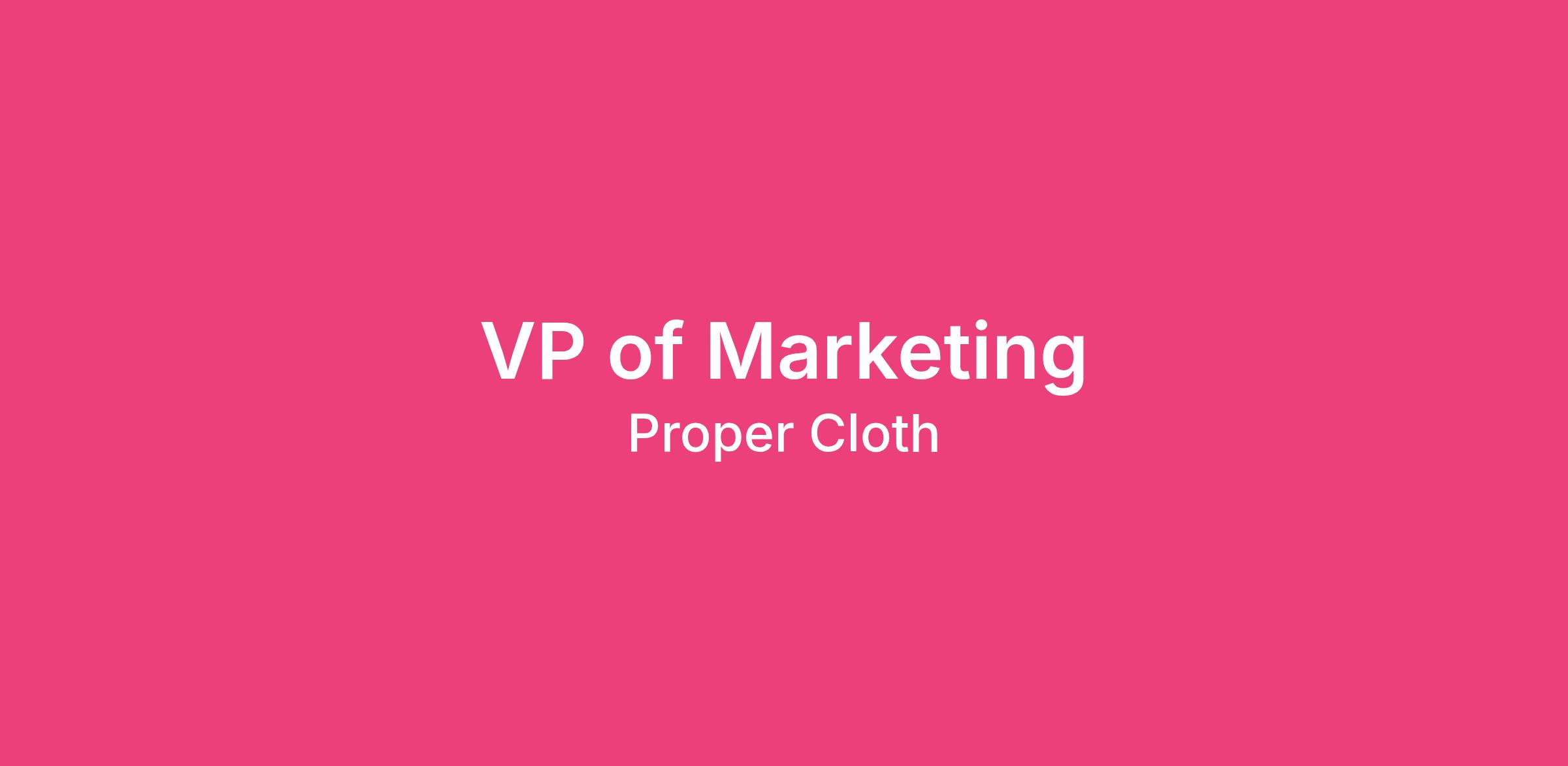 Proper Cloth is seeking a VP of Marketing to lead and scale our marketing organization across performance, lifecycle, brand, PR, and creative production. This role is responsible for turning company-level marketing strategy into high-quality execution, ensuring consistency, rigor, and impact across all customer touch points.