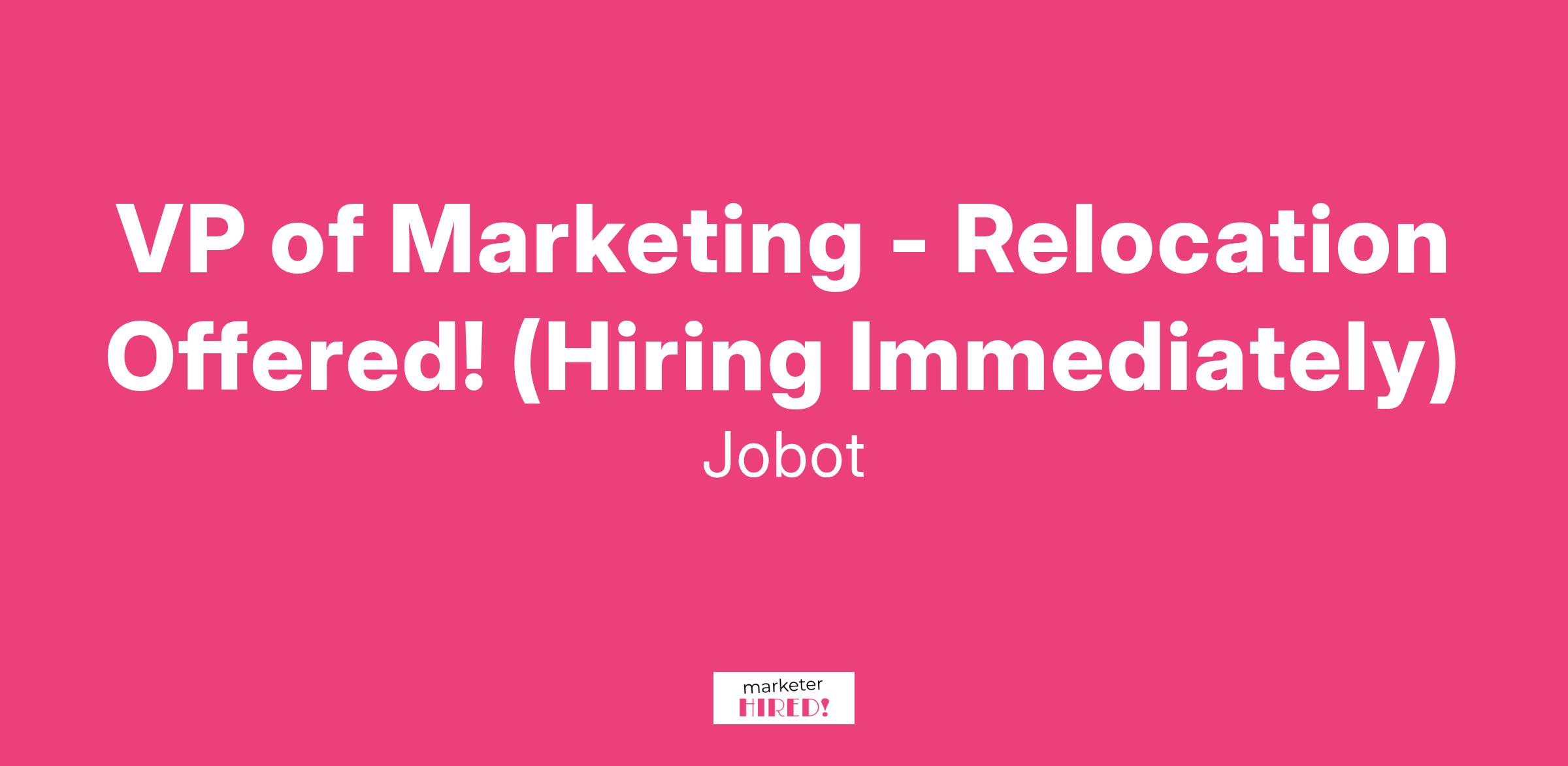 VP of Marketing - Relocation Offered! (Hiring Immediately)